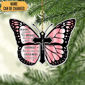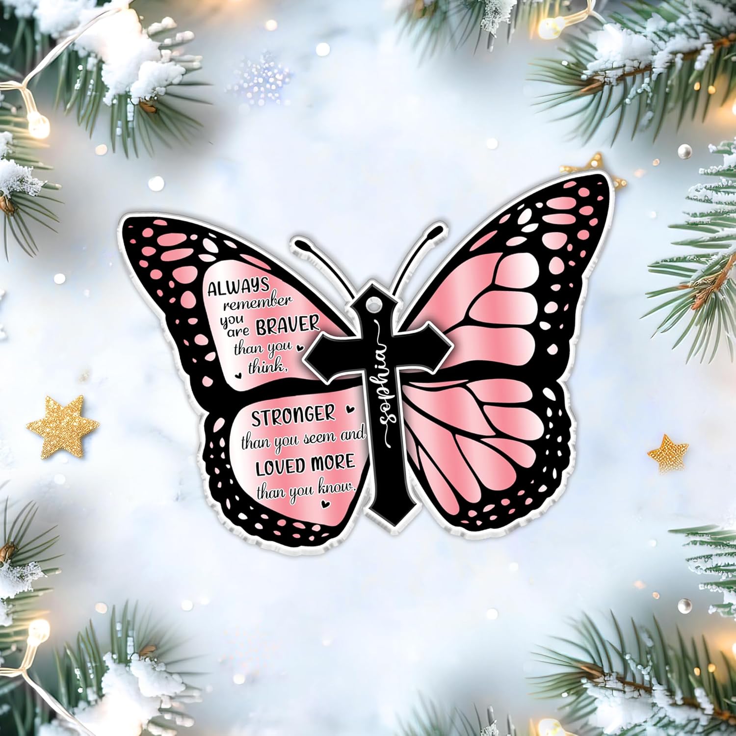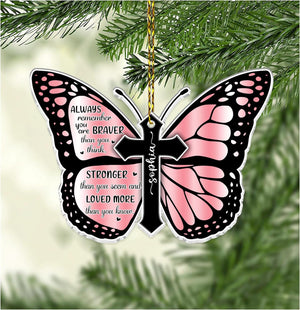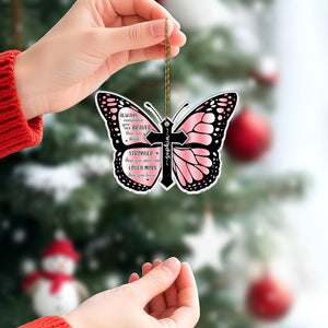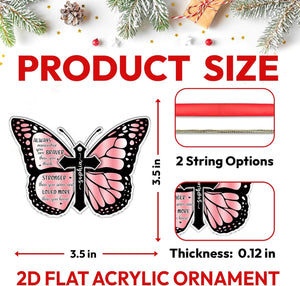 Pink Butterfly Breast Cancer Cut Acrylic Ornament – Personalized Encouragement Gift for Survivor or Warrior, Awareness Ribbon Christmas Tree Decor