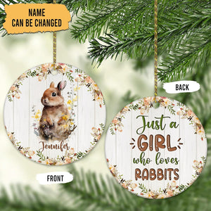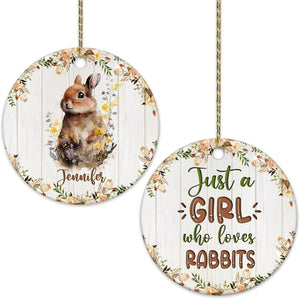 Rabbit Lover Ceramic Ornament  Personalized Just A Girl Who Loves Rabbits Keepsake  Cute Animal Gift for Women & Girls