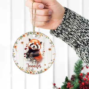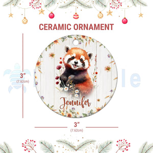 Delight your décor with this red panda illustration framed by flowers. Its playful theme adds warmth and fun to holiday displays. Made from high-quality ceramic, 3 x 3 inches, it showcases a radiant finish that makes every detail glow. Double-sided full-color printing ensures durability and brightness. Lightweight yet strong, it hangs easily with a gold cord. Perfect for Christmas trees, garlands, or small displays, it suits all holiday styles. More than décor, it tells a story of love for animals and cherished memories. Ideal for Christmas, birthdays, or housewarming gifts. Personalized with a name, it becomes a meaningful keepsake. Order your red panda ceramic decoration today and share cuteness this season.