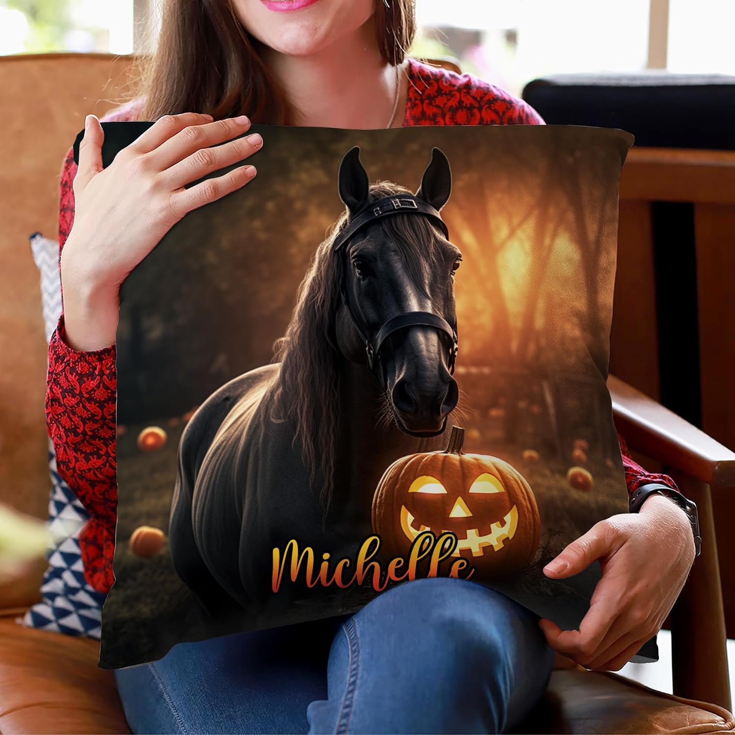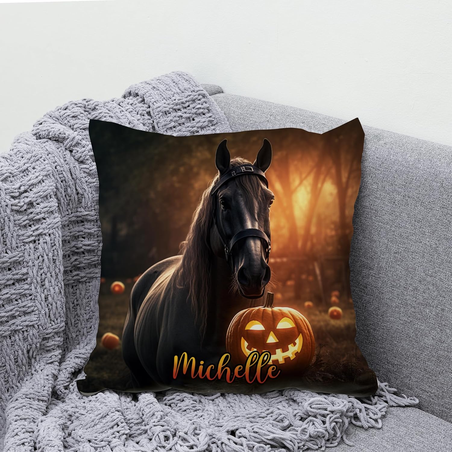Home Horse Halloween Pattern - Personalized Pillow (Insert Included)