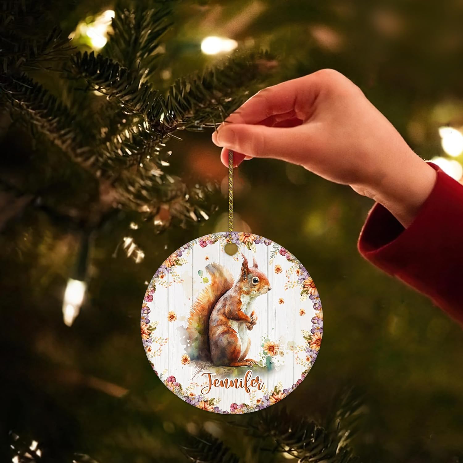 Squirrel Lover Ceramic Ornament Personalized Christmas Decoration with Custom Name Cute Animal Keepsake Gift