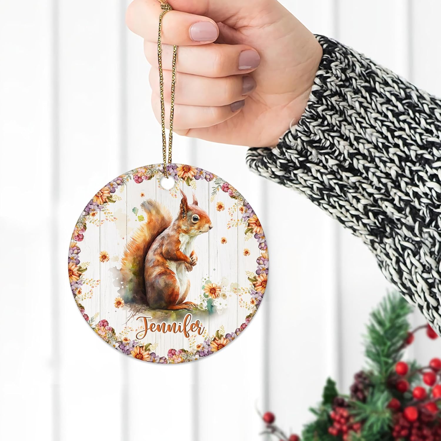 Squirrel Lover Ceramic Ornament  Personalized Christmas Decoration with Custom Name  Cute Animal Keepsake Gift