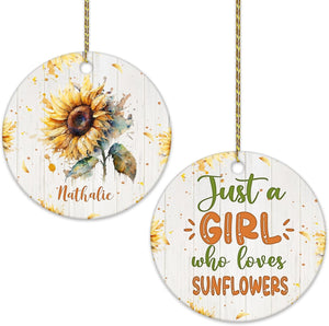 Sunflower Lover Ceramic Ornament  Just A Girl Who Loves Sunflowers Personalized Christmas Decoration  Floral Gift Keepsake