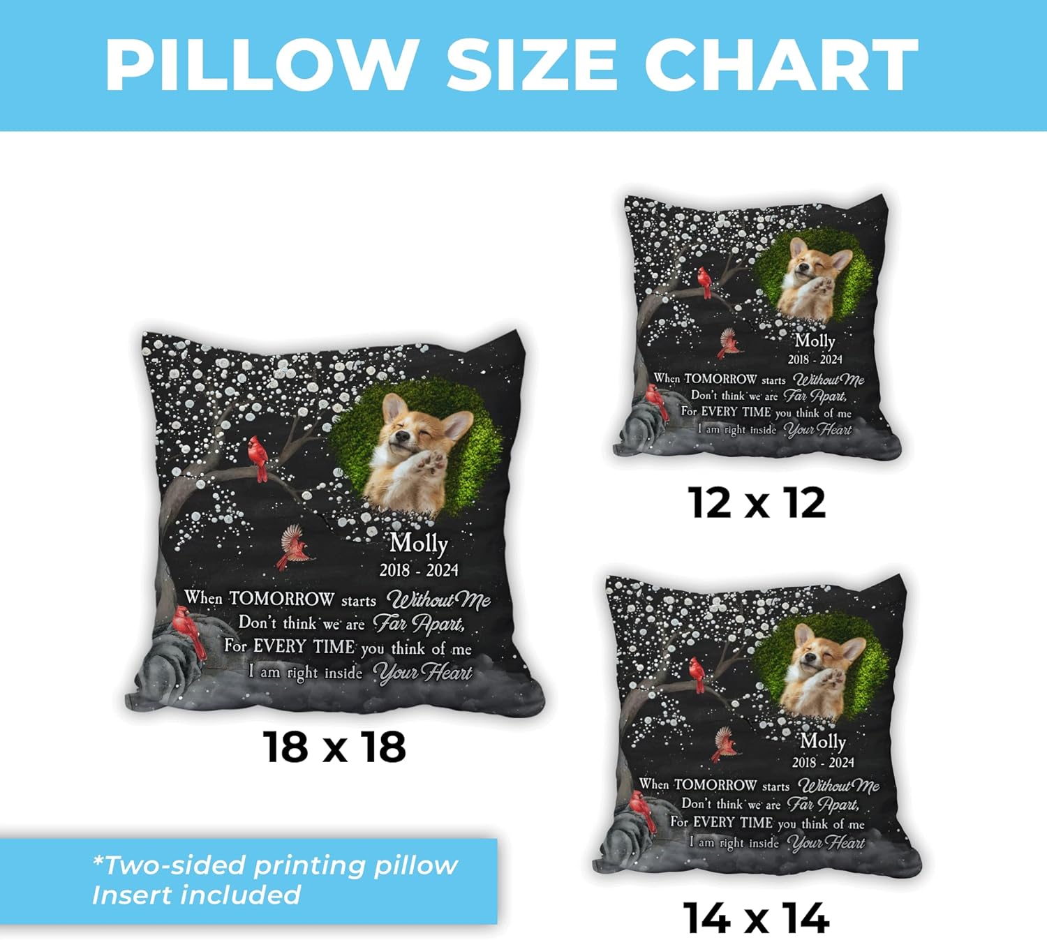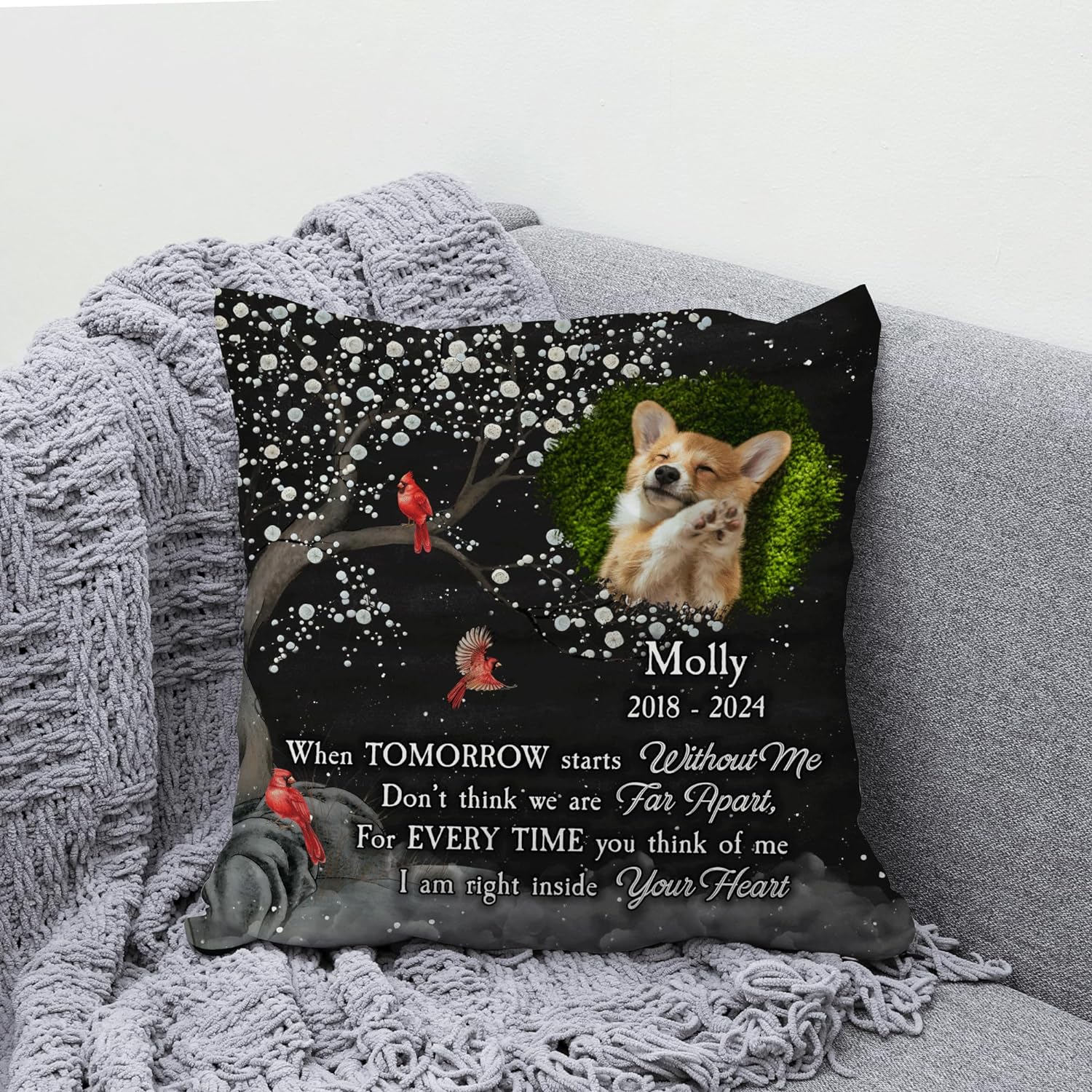 We recently lost our 16 year old yorkie poo and I really wanted something for our camper to memorialize him since we always took him with us. I got this pillow for the couch and it turned out really nice. A little small but still very nice quality.