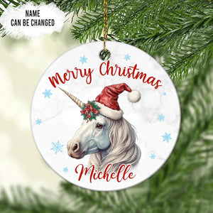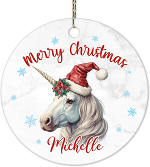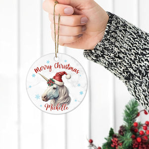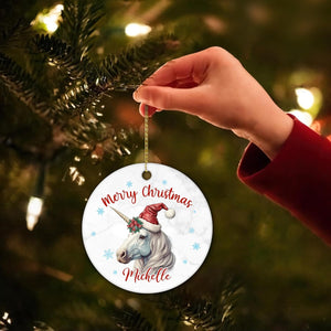 Unicorn Christmas Ceramic Ornament Personalized Holiday Decoration with Custom Name Magical Gift for Animal Lovers