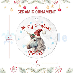 Unicorn Christmas Ceramic Ornament  Personalized Holiday Decoration with Custom Name  Magical Gift for Animal Lovers