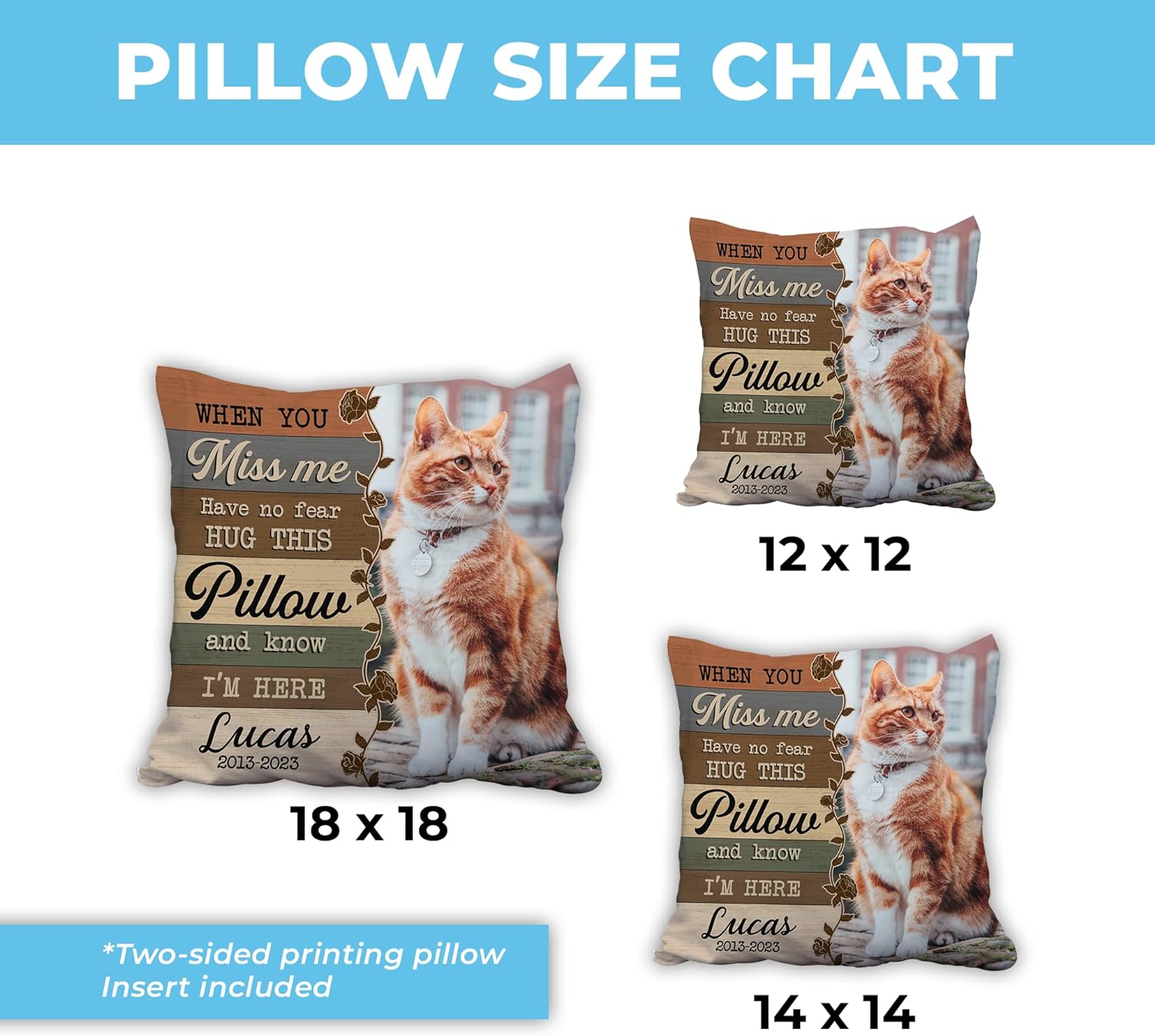 Our cat Leo passed away the best cat you could ever have .,this pillow really takes a lot of grieve away thank you for the good job on it ..my Leo looks like in real life ..love love it I keep on hugging this pillow ..I urge anyone who lost an cat dog or any animal to order one is money well spend ..thanks for a great job ..Ulla fischer
