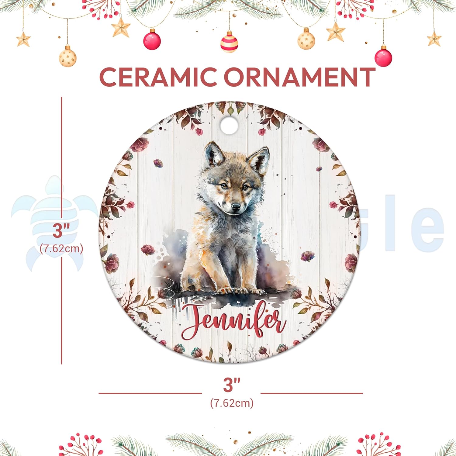 MESSAGE: Bring the wild into your holidays – personalized wolf ornament celebrates nature’s beauty with festive spirit and heartfelt keepsake.