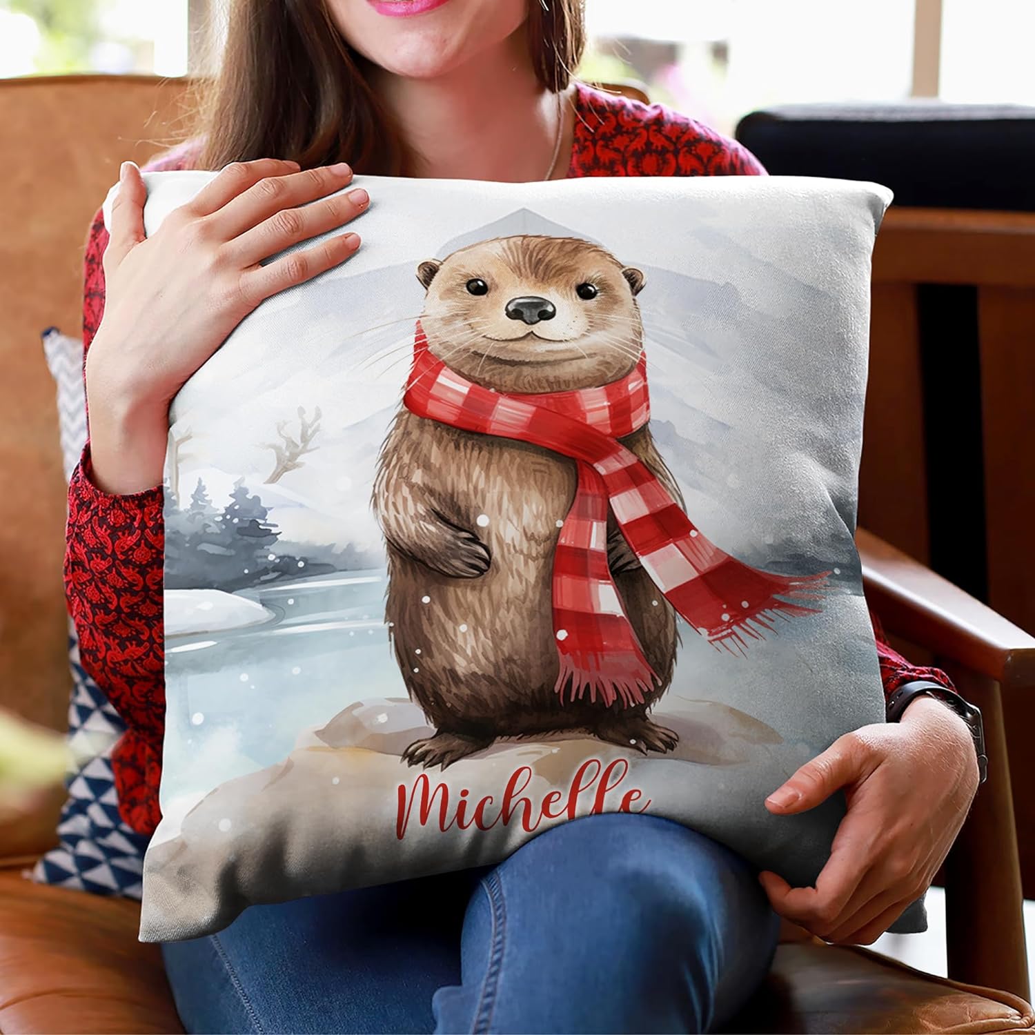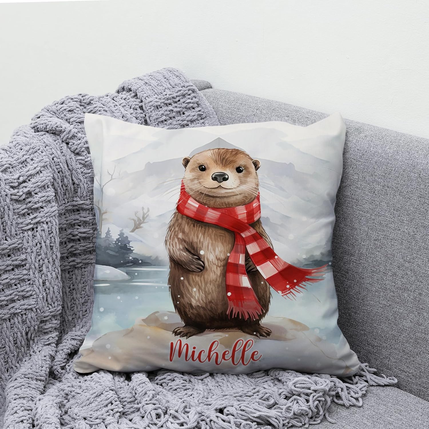 Home Otter Snow Pattern - Personalized Pillow (Insert Included)